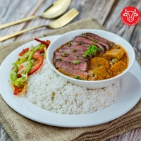 Chicken Buttermilk x Lamb Danok 1 pcs x Chicken Chop 1 pcs x Nasi Butter x Pai Tee 2 pcs x Mash Bergedil 6 pcs x Mantou 4 pcs x Buttermilk sauce x Percik sauce x Cheesy sauce