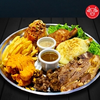 Lamb Grill x Chicken Grill x Homemade Meatball 3 pcs (beef) x Cheezy Wedges x Cheezy Chilies Fries x Mashed Potato 1 scoop x Black Pepper Sauce x BBQ Sauce