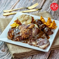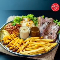 Lamb Grill x Chicken Parmigiana x (Spaghetti Bolognese beef) x Fries x Cheezy Wedges x Black Pepper Sauce x Creamy Mushroom Sauce (2-3 pax)