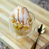 Vanilla Ice Cream serve with Sweet and Tangy Mango syrup drizzle