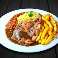 Lamb Grill 1pcs x Spaghetti x Fries x Black Pepper Sauce x (Bolognese Sauce beef)