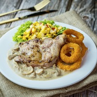 Chicken Grill x Creamy Mushroom Sauce x Sweet Corn x Onion Ring