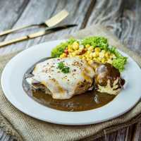 Chicken Grill x Mashed Potato x Cheese Slice x Onion Ring x Creamy Mushroom Sauce x Black Pepper Sauce